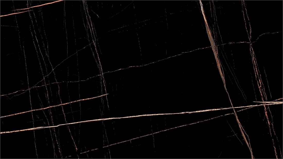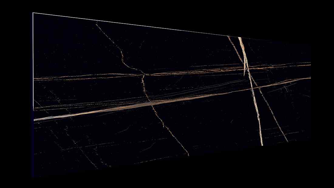 Lamar Saint Laurent Porselen siyah üzerinde parlak turuncu-sarı damarlar ile haraket katıyor