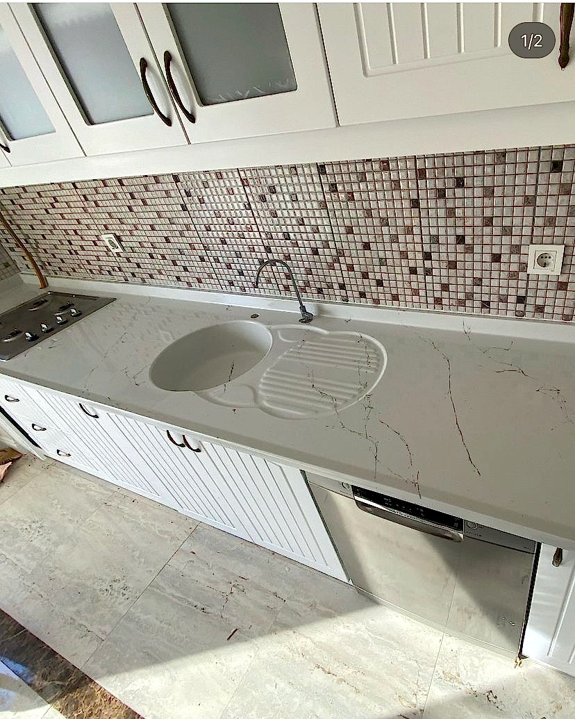 Mermer Desenli Poligranit Döküm Mutfak Tezgahı 59434 Defa İncelendi